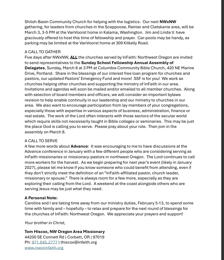 Called to One God (and many ministries) Tom HiscoxFebruary 3, 2026 Facebook0 Twitter Pinterest0 0 Likes